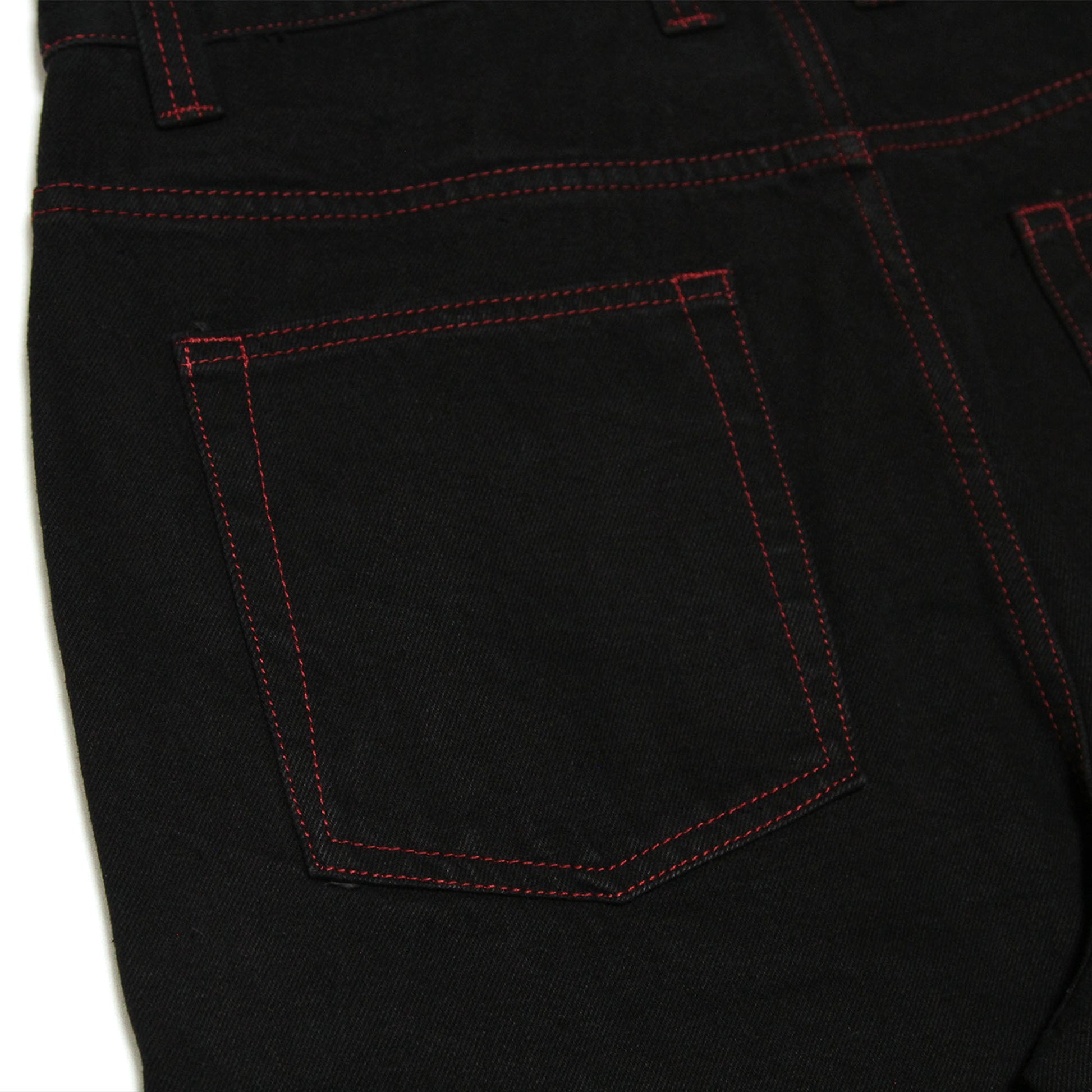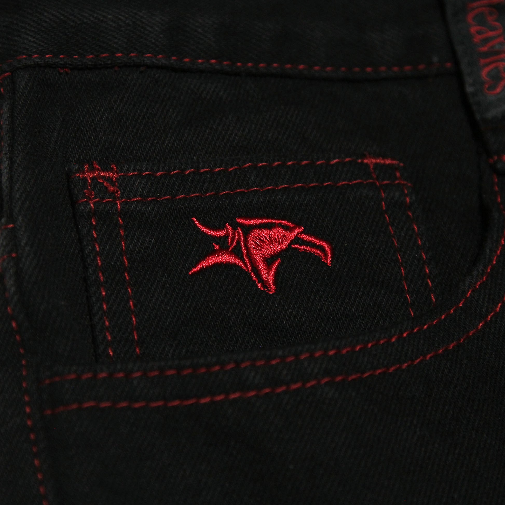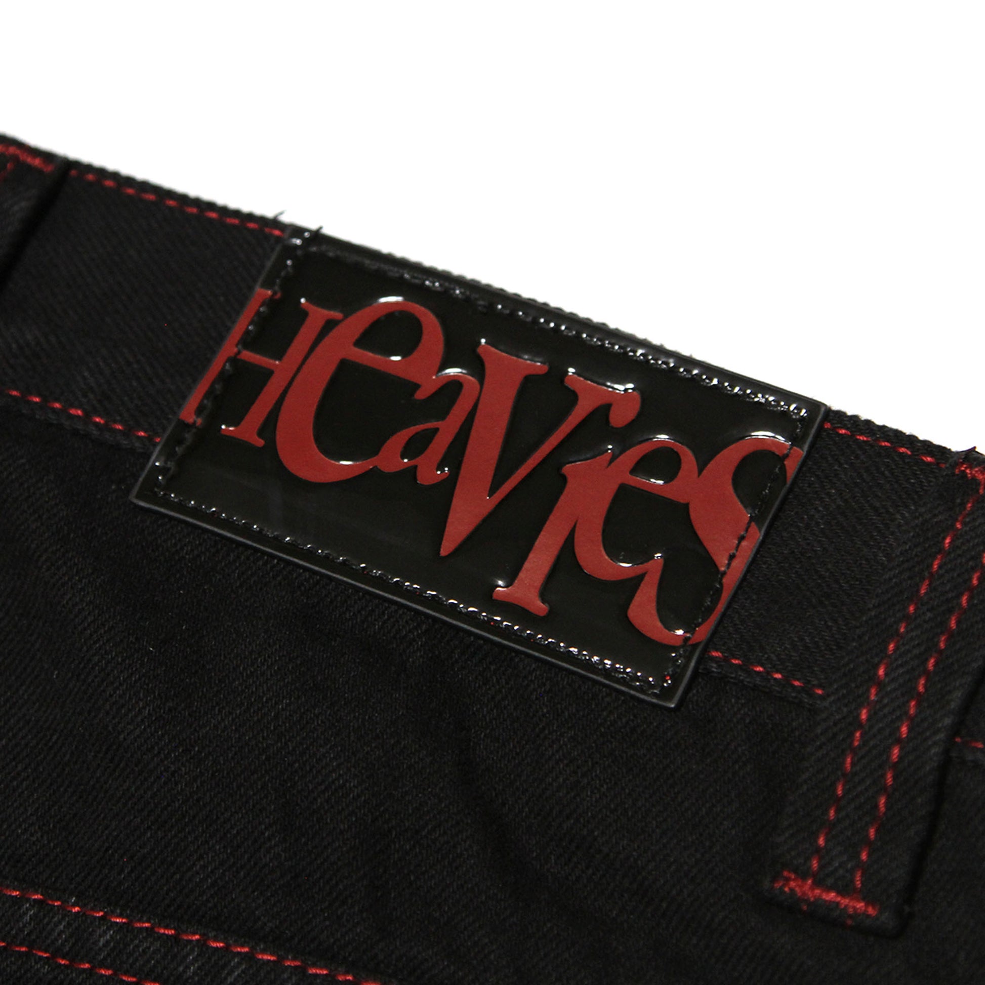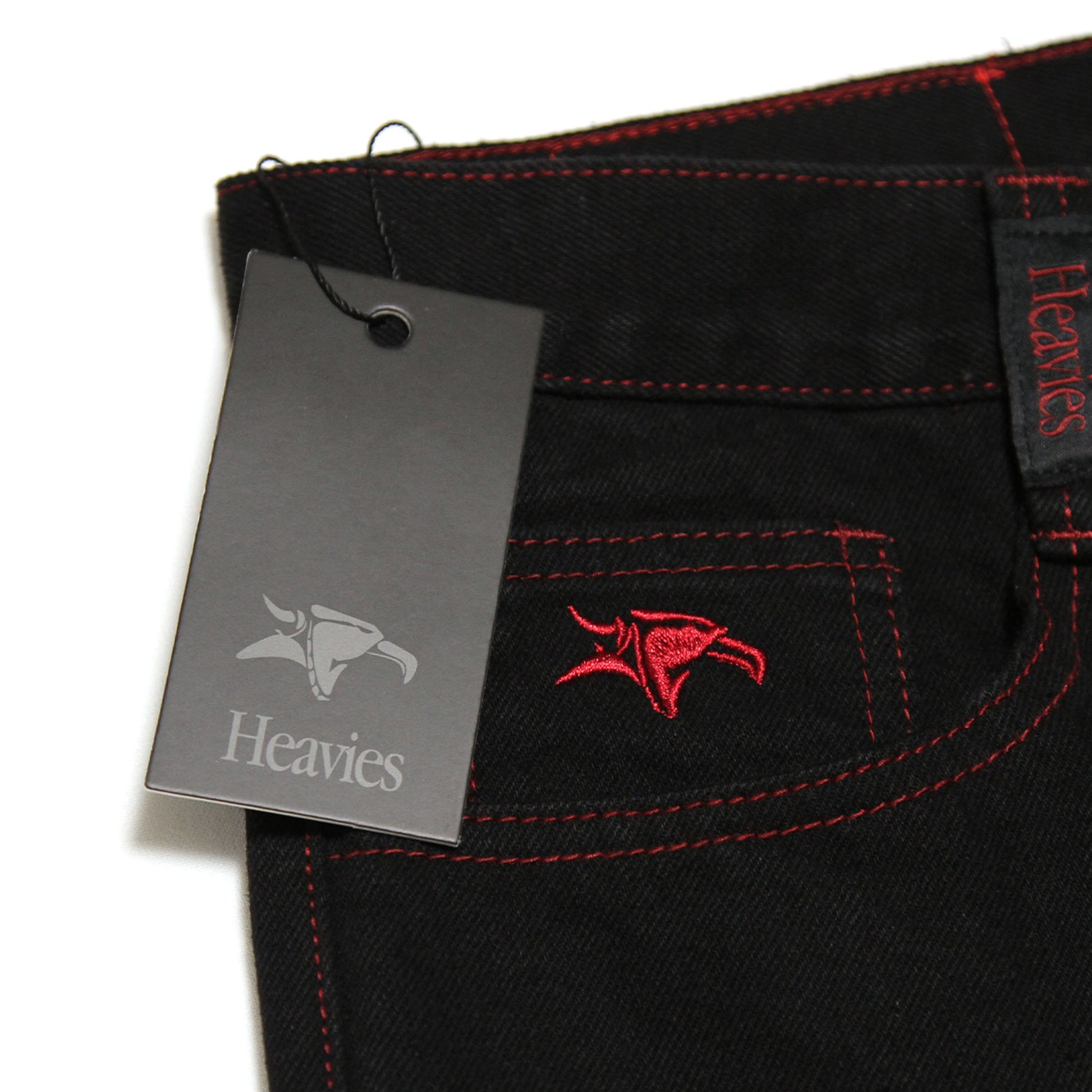 We used our same trusted “Heavy” denim but crafted a much slimmer cut to our standard Heavies jeans. We also added the iconic griffin logo to the change pocket, as well as a faux leather patch to the back and as standard we re-enforced the crotch.